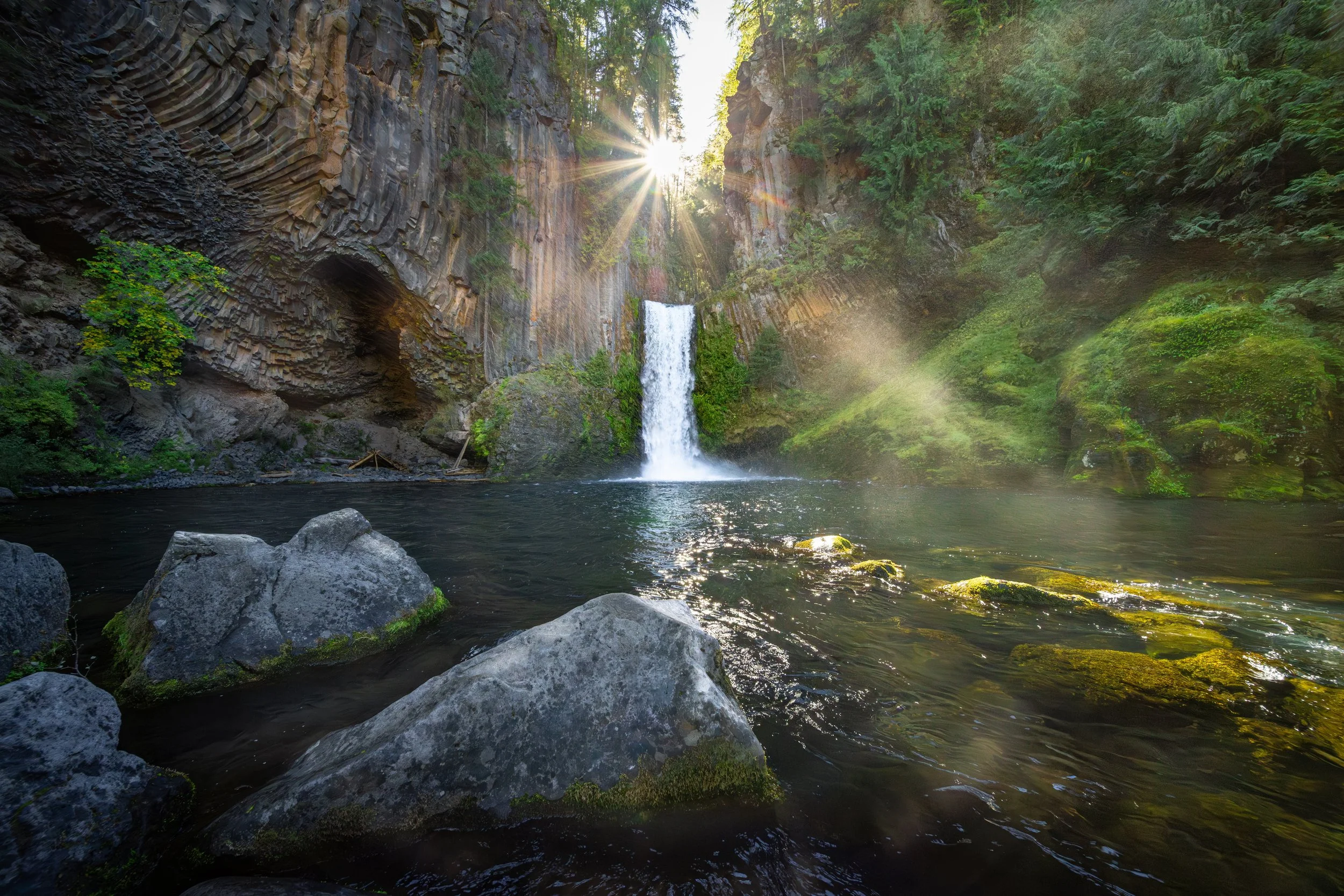 Toketee Falls, with its 120-foot multi-tiered cascade framed by towering basalt columns, offers a magical escape into nature. Sit back, relax, and let the soothing sights and sounds of this iconic waterfall transport you to a place of calm and peace.